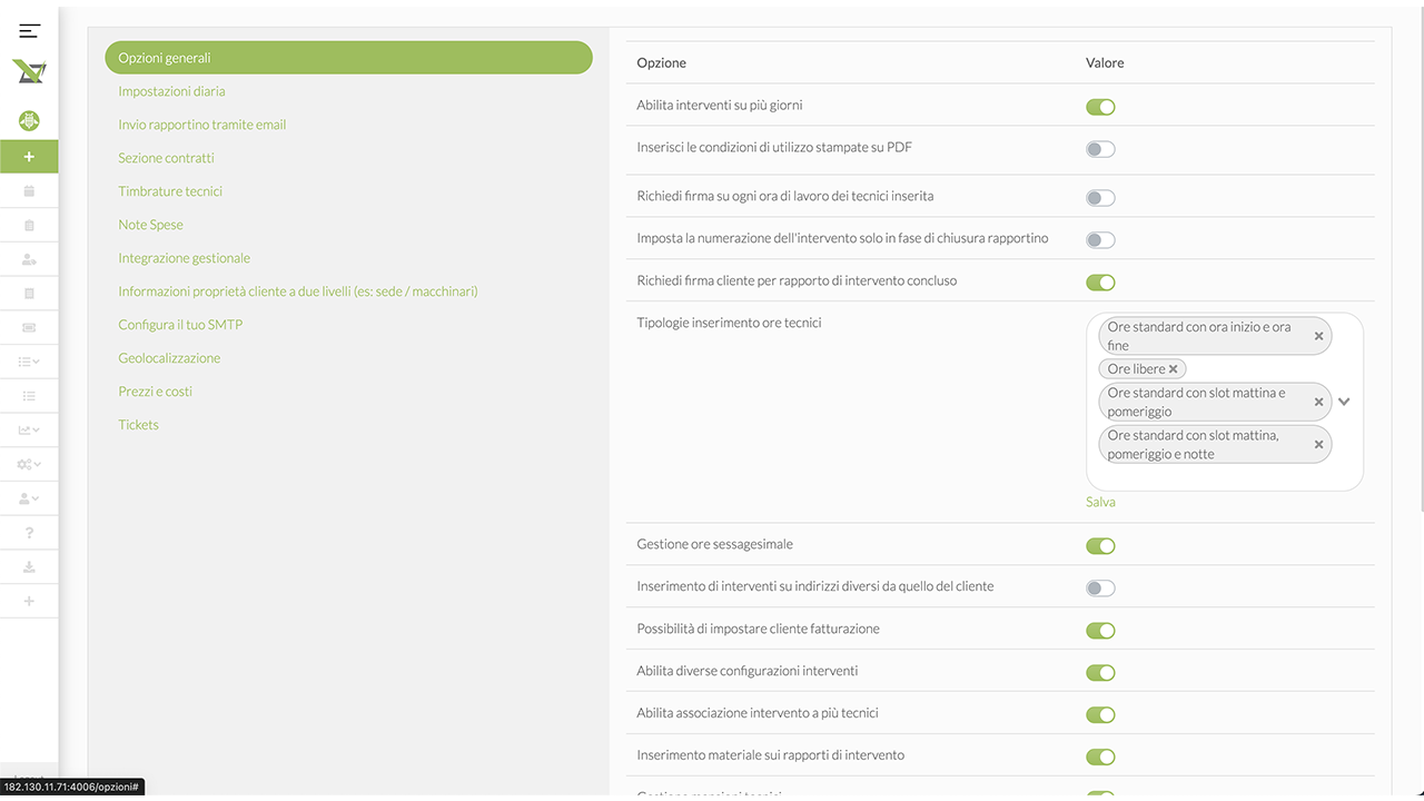 ci sono due modalità per caricare i rapportini: chiuso e flaggato come completato su elenco interventi oppure invio automatico al gestionale alla chiusura dell'intervento. Per selezionare l’opzione che si preferisce, occorre gestire un flag in impostazioni.