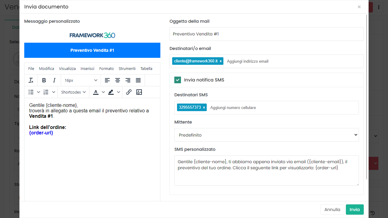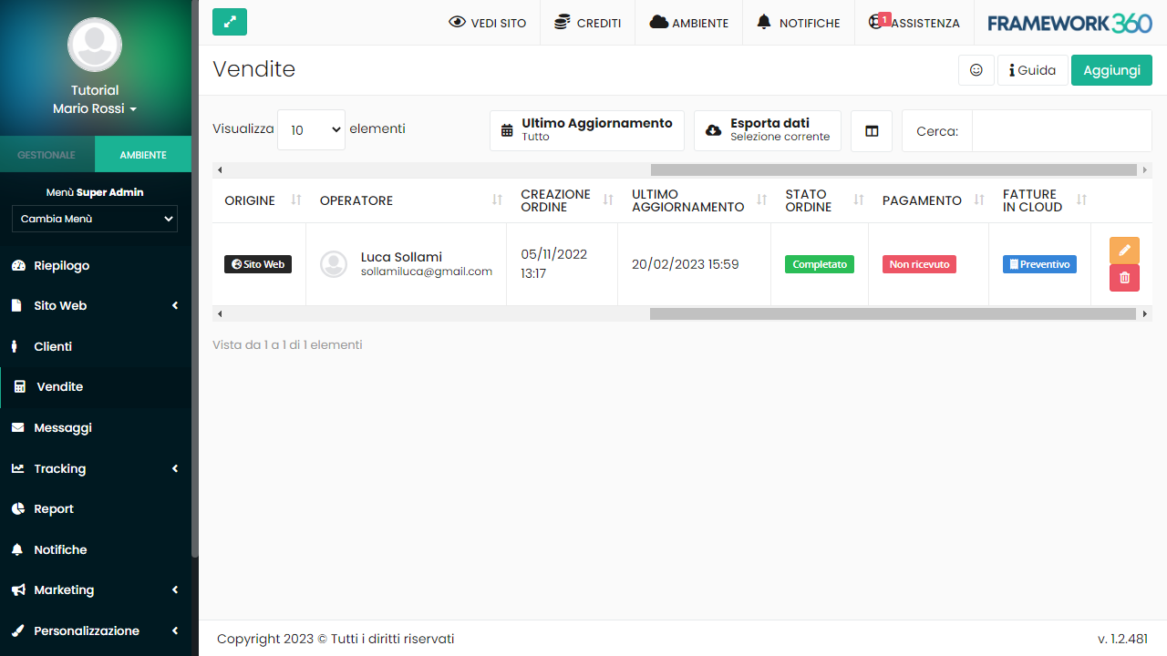 Grazie all'integrazione con Fatture in Cloud potrai generare documenti fiscali dalle vendite registrate su Framework360 tramite un semplice click.