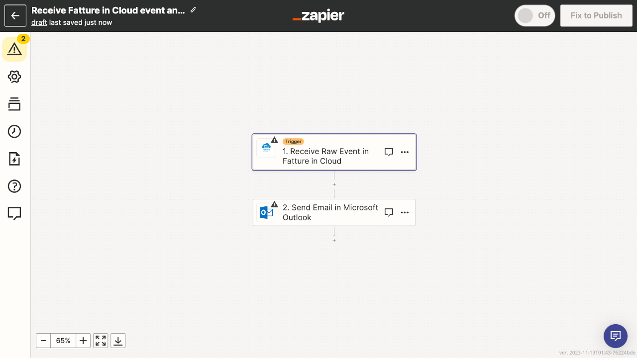 In breve l'integrazione di Fatture in Cloud e Outlook semplifica la gestione delle fatture, aiuta a risparmiare tempo e migliora l'efficienza complessiva delle attività.Ecco i passaggi da seguire per collegare Fatture in Cloud a Outlook tramite Zapier: