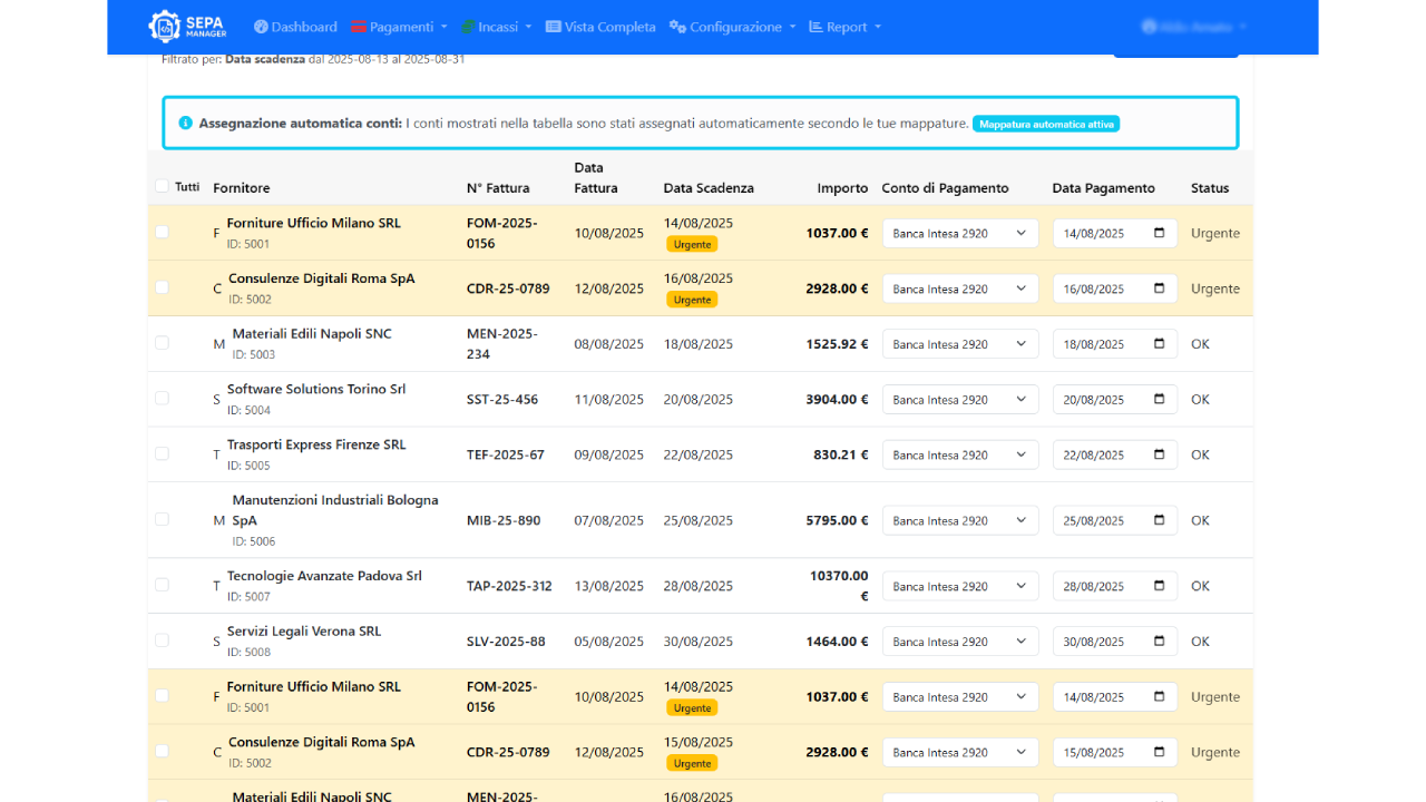 Automazione inserimento bonifici acquisti e Ri.Ba incassi