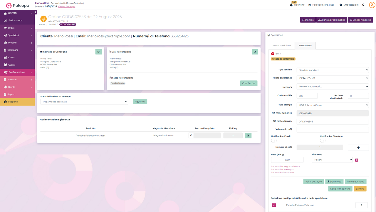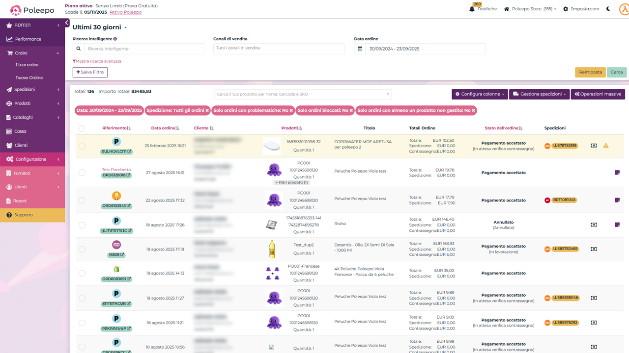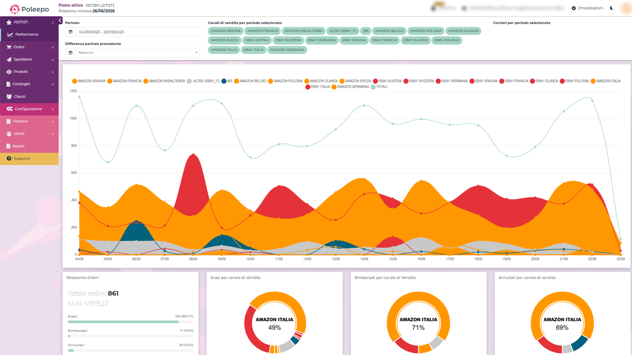 Poleepo offre inoltre strumenti di monitoraggio e controllo, che permettono di avere sempre una panoramica chiara dello stato delle vendite e delle spedizioni.