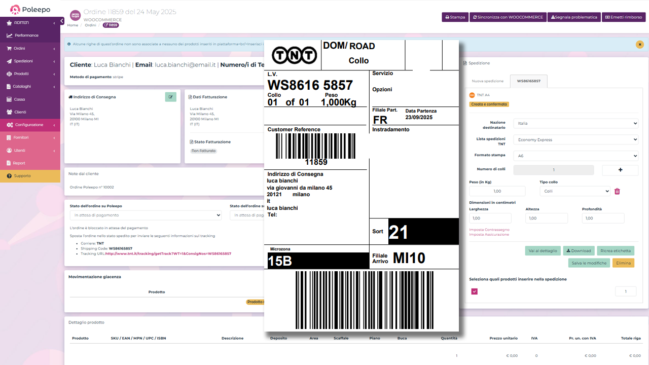 Gestione spedizioni: integrazione con i corrieri, stampa etichette e tracking automatizzato.
